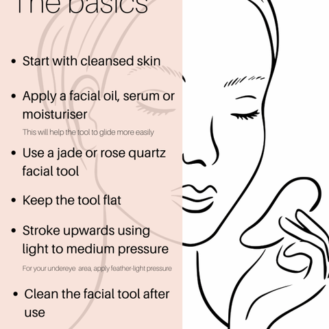 First, let's understand the details of a gua sha facial and rose quartz roller. Gua Sha is great for manual lymphatic drainage, relieving facial and jaw tension, and lifting and contouring the skin. Facial Rolling is great for reducing puffiness, applying products such as serums or oils, and soothing the skin.